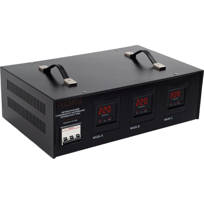 Трехфазный стабилизатор напряжения РЕСАНТА АСН-4500/3-ЭМ компенсирует скачки электричества и защищает подключенное оборудование от перегрузки. Эта модель подходит как для небольших производственных объектов, так и для загородных домов или дач, если туда проведена трехфазная сеть.